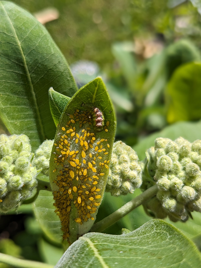 Found on common milkweed at our home, with an abundance of orange aphids. |