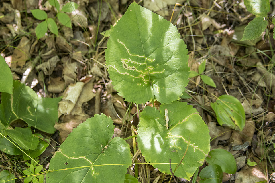 Larvae eat only the middle leaf tissues, leaving intact the waxy upper and lower outer layers (cuticles). They create pale tunnels as they eat. The placement and shape of the tunnels, and the presence of frass, are identifying features of leaf miners. Many leaf miner species are plant specialists, and can be identified simply by noting the species of the host plant. |