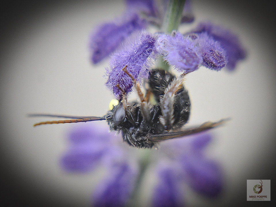 Two-spotted Long-horned Bee (Melissodes bimaculata) closeup on Spotted beebalm (Monarda punctata) |