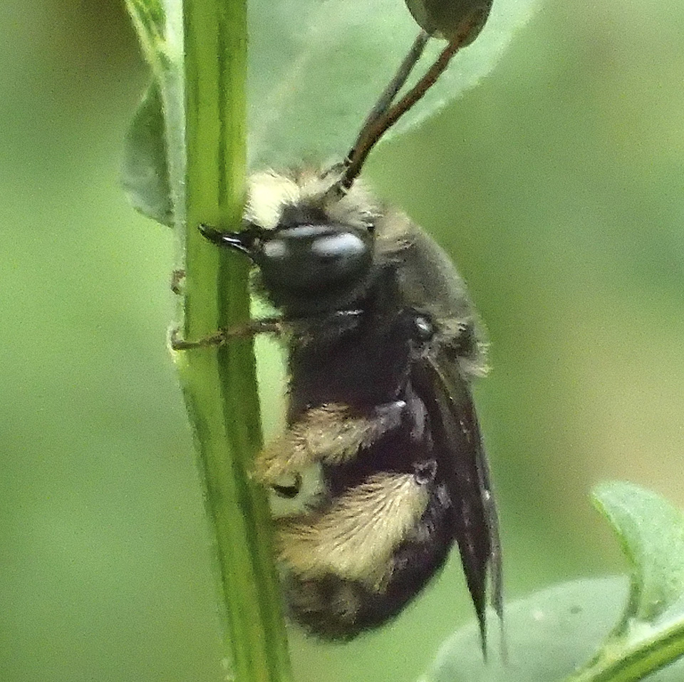 Location: Barnes Prairie, Racine Co., Wisconsin On July 6-7, 2021, I found a number of these cute bees resting on Aster sp. on Barnes Prairie, Racine Co., Wisconsin early in the morning. |