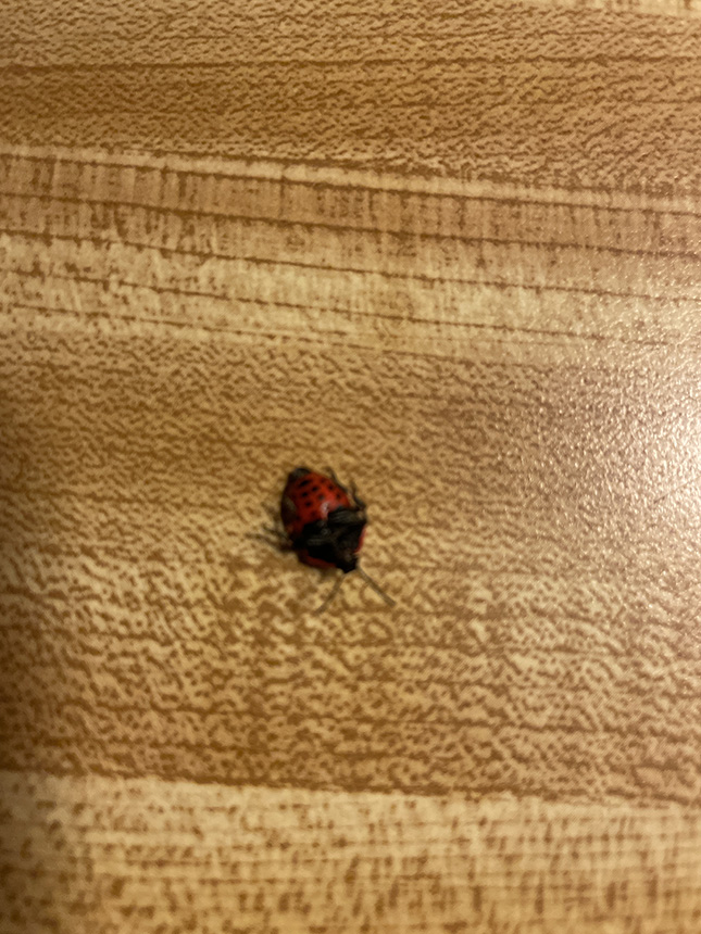 In September or October, adults seek a place to overwinter. This may be in the soil, under plant debris, or in a house. They emerge the following year in late May or June. The female lays clutches of 10 to 25 eggs in two rows. She may lay 100 to 300 eggs in her lifetime. |