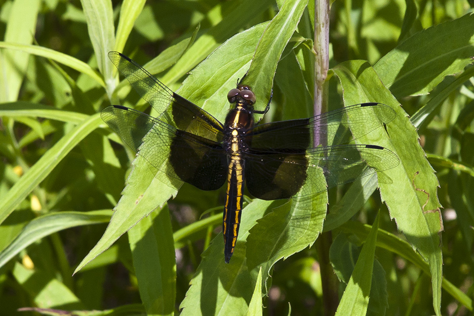 Female Widow Skimmer resting on its perch along the river in The Big Stone National Wildlife Refuge. |