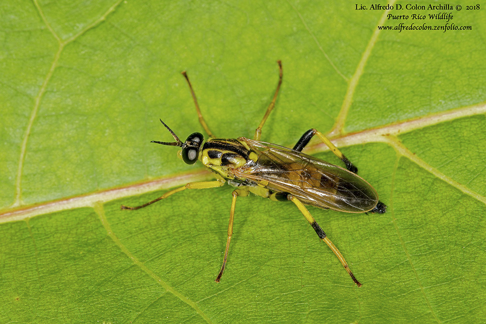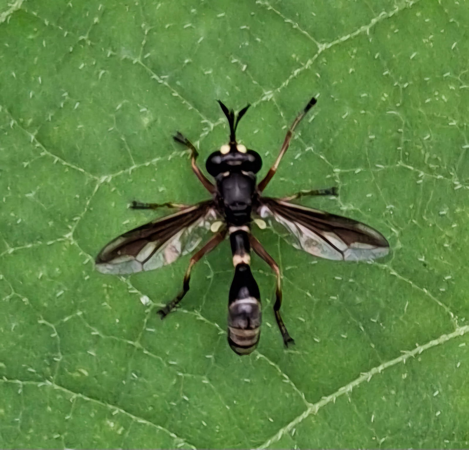 Sphecomyia vittata (long-horned yellowjacket fly)