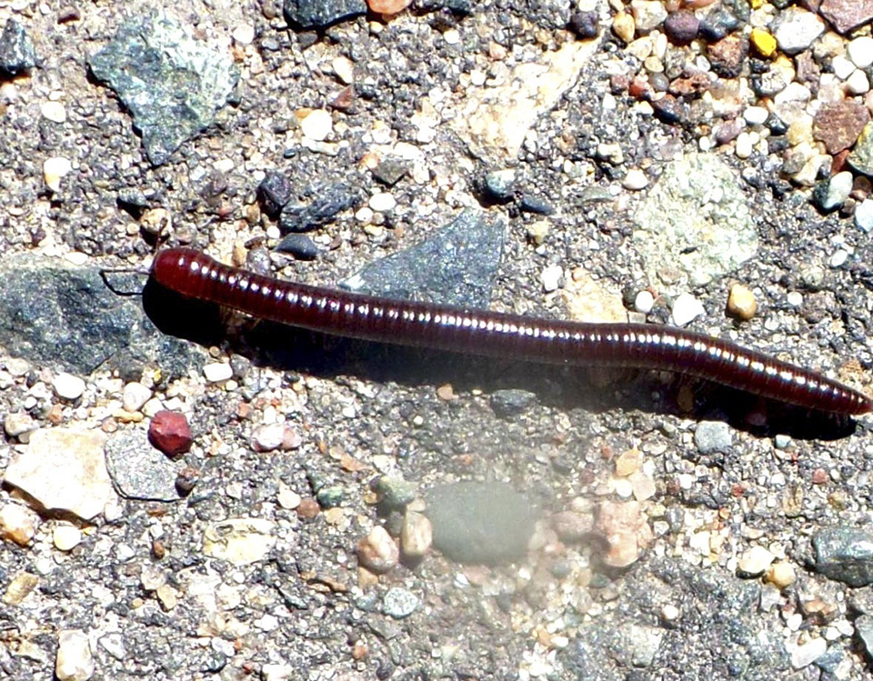 Adults are worm-like, and cylindrical. They have more than 32 body segments (rings). Each ring is brownish-black with bronze-colored edges. This species is distinguished from similar millipedes by its large size and by the lack of a pointed projection on the last body segment.