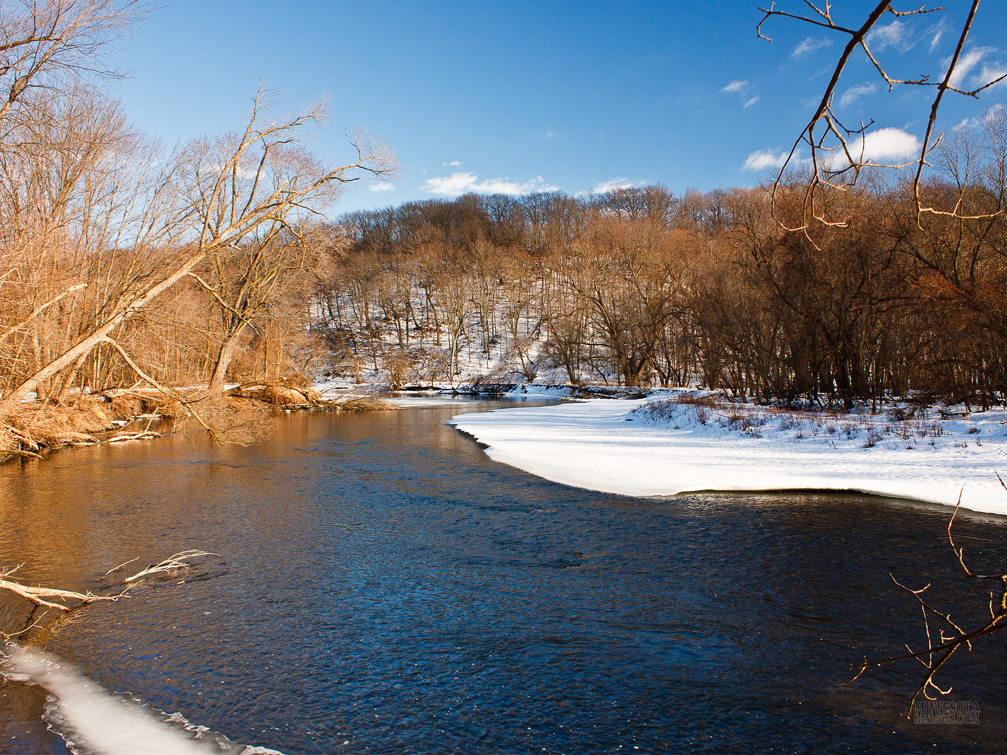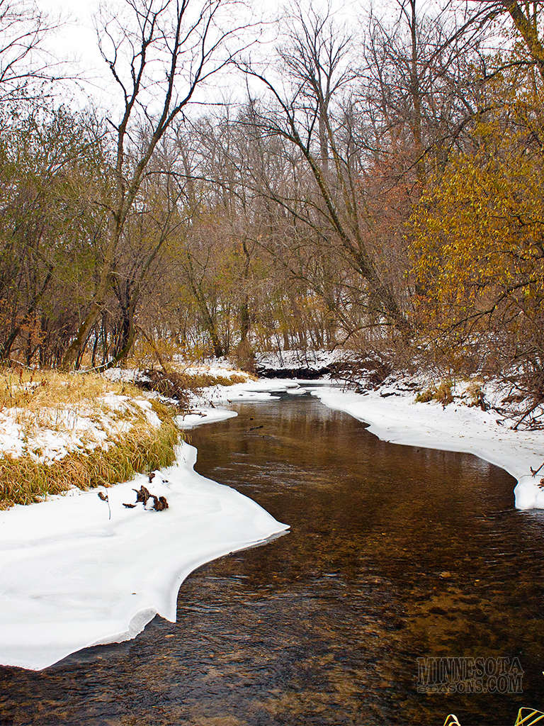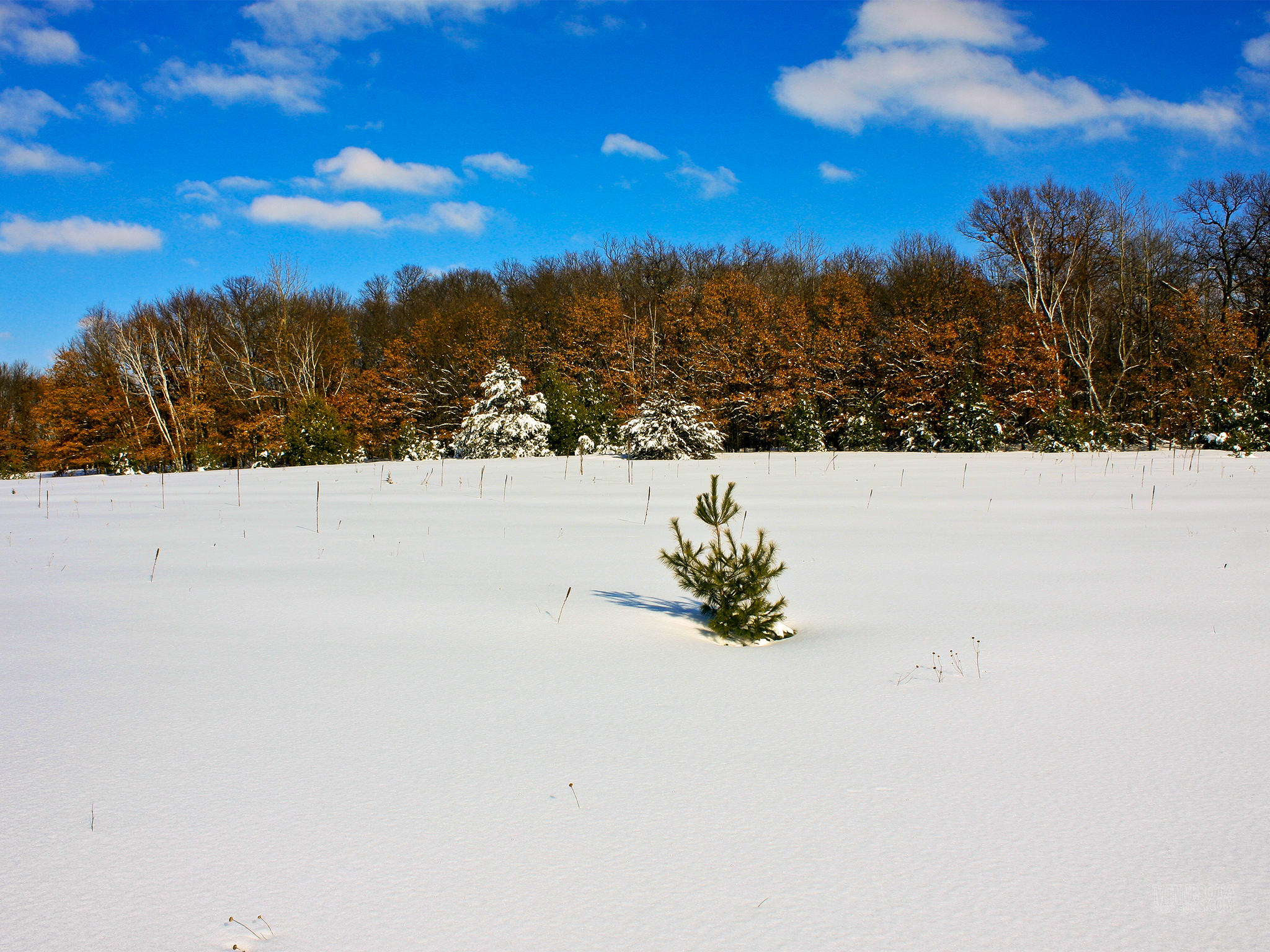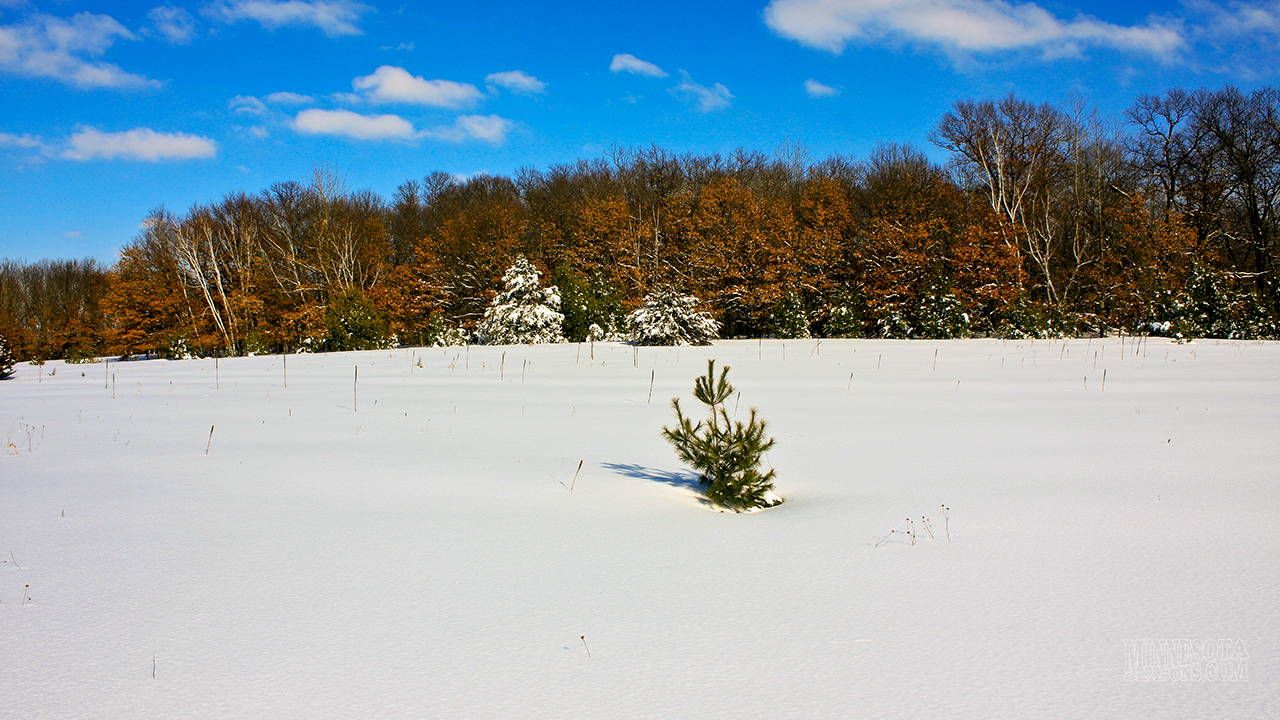 The hibernal ecological season corresponds to the winter calendar season. In our area it is characterized by cold temperatures, a usually snow-covered landscape, and an absence of migratory bird species. Deciduous trees are bare and fallen leaves begin to decay. Migrating birds have settled in winter habitats. In Minnesota the hibernal season usually begins about December 1 and lasts until about March 1. Snow Cover Temperature |