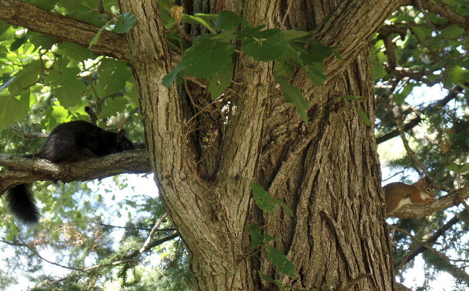 Location: City of Woodbury, MN Pair of Red Squirrels have established home around our house and in our trees. |
