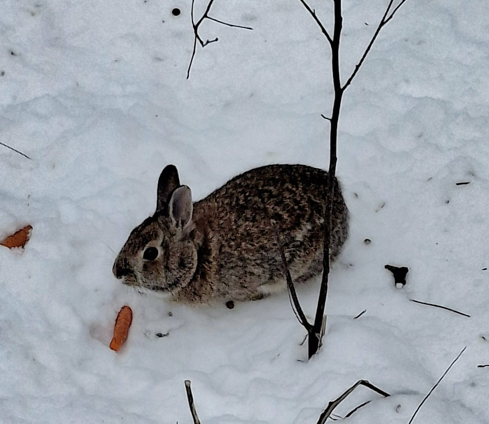 My question is: How do they survive in the winter? I see them out occasionally at dusk in the snow or where the snow is pushed aside or bare spots under shrubs & trees, but even that doesn’t seen like enough to sustain them through the winter. I found a dead bunny last spring next to our building by some shrubs.