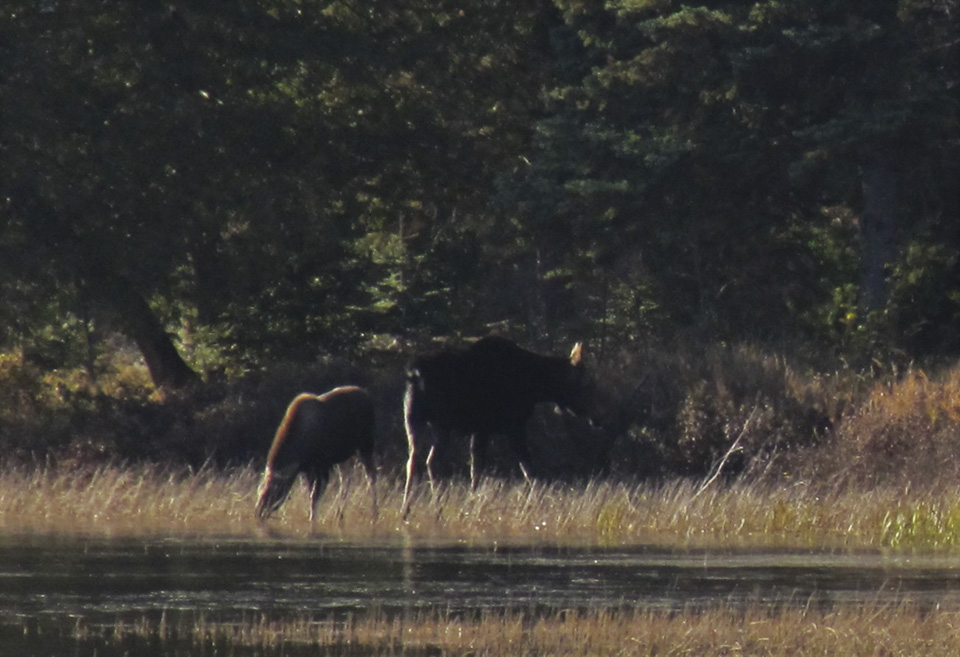 Cow and calf feeding at Poplar Lake on the Gunflint Trail |