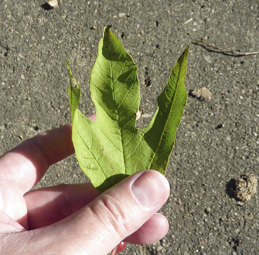 Similar to a hand. Having more than three lobes or leaflets that radiate from a single point at the base of the leaf.
