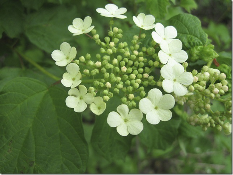 High bush cranberry blooming? I came across this what I think is some kind of high bush cranberry blooming. It was along a small stream bank in Norman County, Mn. |