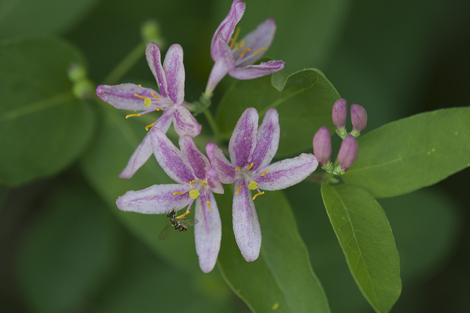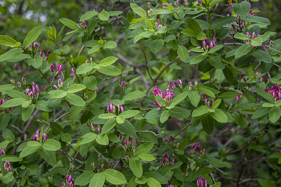 Bell’s honeysuckle represents several genetically distinct fertile hybrids of European cultivars of Morrow’s honeysuckle and Tatarian honeysuckle. |