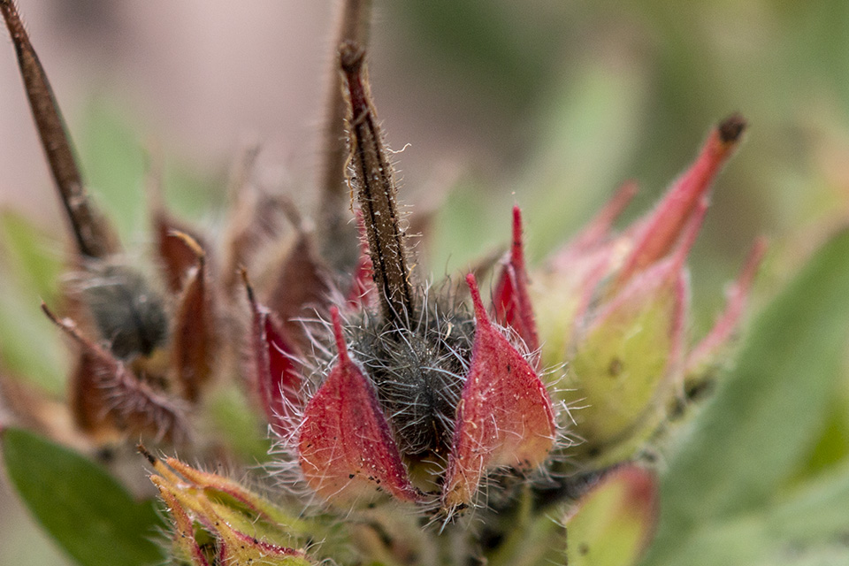 Carolina geranium, also called Carolina cranesbill, is a 4″ to 24″ tall, annual forb rises on several stems from a central taproot. It is usually about 12″ to 24″ tall at maturity. The stems are ascending, freely branched, and covered with soft, spreading hairs. Some of the upper branches have glandular hairs between the nodes. The leaves are opposite, 1⅛″ to 2¾″ wide, and palmately divided into 5 to 9 deep lobes, cut almost to the base. The leaf margins have widely spaced, deeply-cut teeth, that may amount to secondary lobes. The lobe tips are blunt. The inflorescence is a tight cluster of many flowers in the upper leaf axils. The cluster is at the end of a long stalk. The individual flowers are on two shorter individual flower stalks that are about the same length as the sepals. The flowers are ⅓″ to ½″ (possibly ⅔″) wide with 5 petals and 5 sepals. The sepals have short, stiff bristles at their tips. The petals are pink and slightly notched at the tip. The fruit is a 1″ to 2″ long, hairy capsule with a beak at the tip that is a little over 1/16″ long. The fruit is in the shape of a crane’s bill, giving this plant one of its common names, Carolina Cranesbill. |