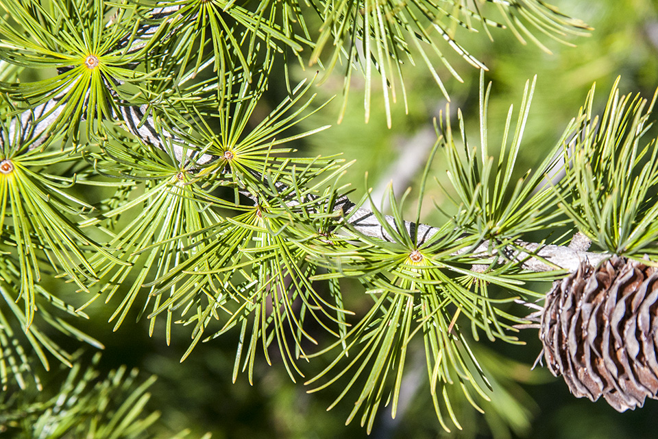 European larch is a medium-sized to large tree, 98′ tall or taller and up to 40″ in diameter at breast height. Needles are borne singly or in clusters of 30 to 40. The twigs are pale yellow and hairless. Mature seed cones are ¾″ to 1¾″ long and are covered with 40 to 60 scales. |