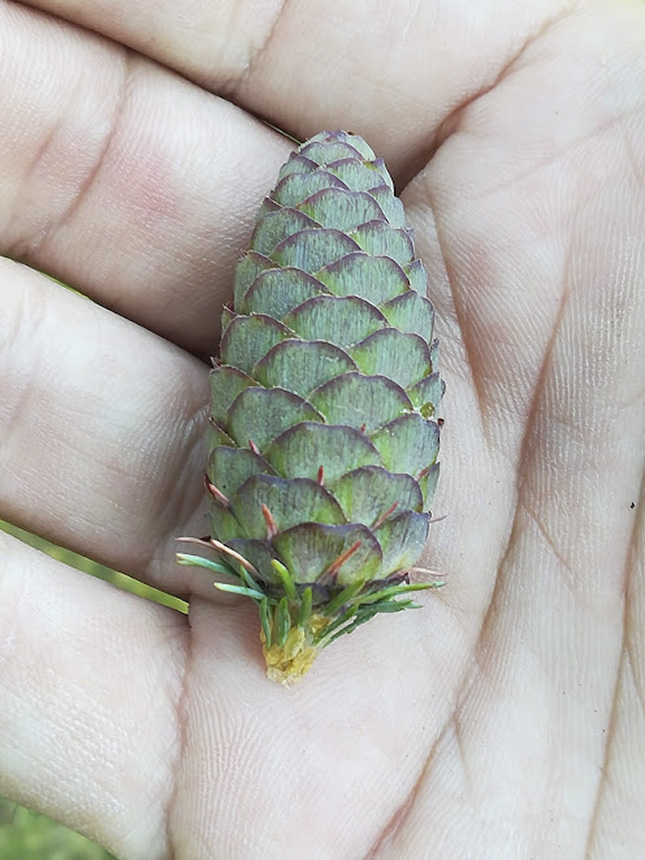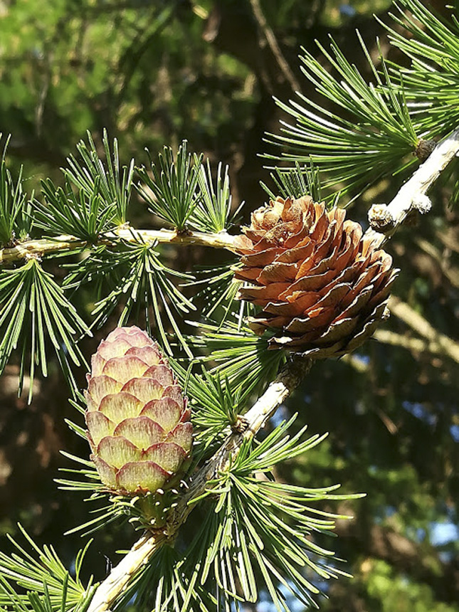 Forming cone and prior year's mature cone on a European Larch, June 2021, Owatonna, Minnesota | |