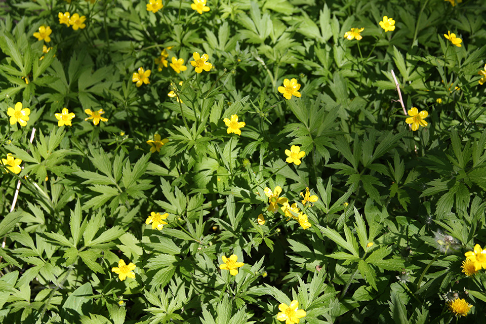 bristly buttercup (Ranunculus hispidus var. caricetorum) bristly buttercup (Ranunculus hispidus var. hispidus) |