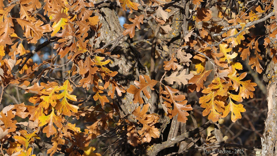 Mature Bur Oak Tree... This is the fall color I observed in the area of the small oak sapling photo I sent before this one. Though not flashy fall colors it’s a pretty healthy tree and has interesting leaves etc. |