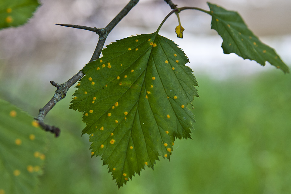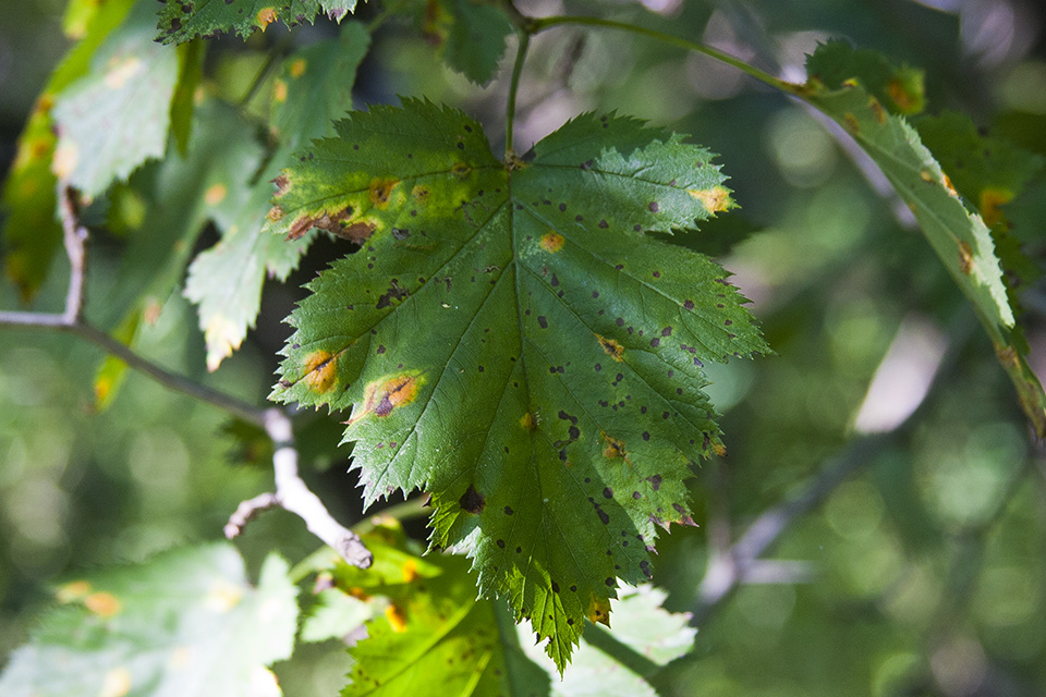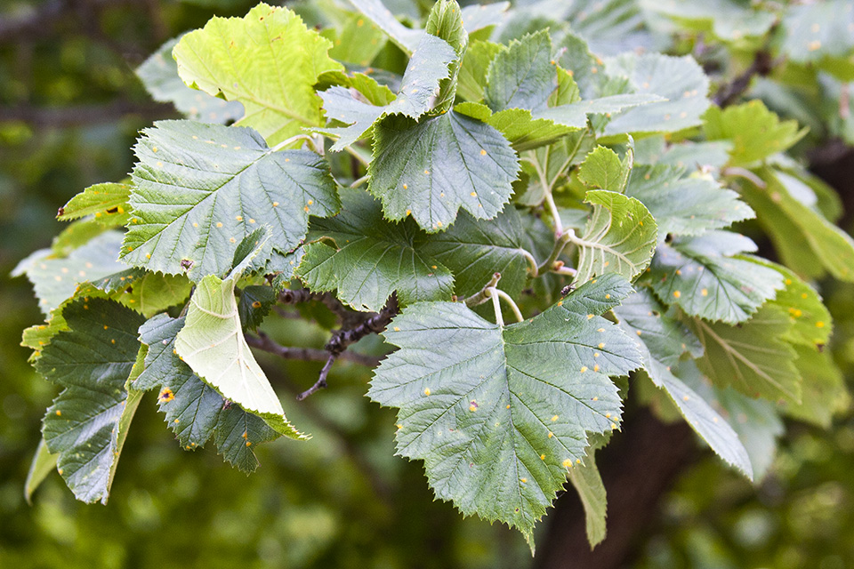 Cedar-hawthorn Rust (Gymnosporangium globosum) Entomosporium Leaf Spot (Diplocarpon mespili) North American gypsy moth (Lymantria dispar dispar) |