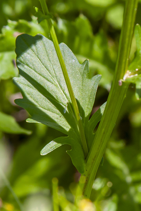 Early winter cress (Barbarea verna) has basal leaves with 4 to 7 pairs of lateral lobes. It is an eastern and west coast species and does not occur in Minnesota. Northern winter cress (Barbarea orthoceras) is a native species. The flowers are ¼″ wide. The flower stalk is club-like or bat-like in overall shape. |