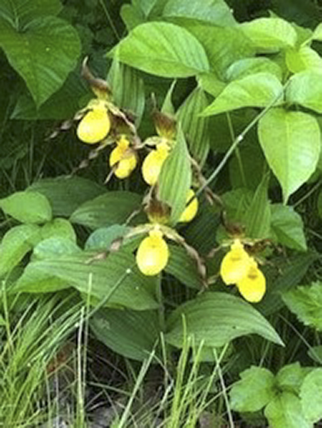Lesser Lady's Slipper... I seen these 6-6-25 and believe they are lesser yellow lady slippers. |