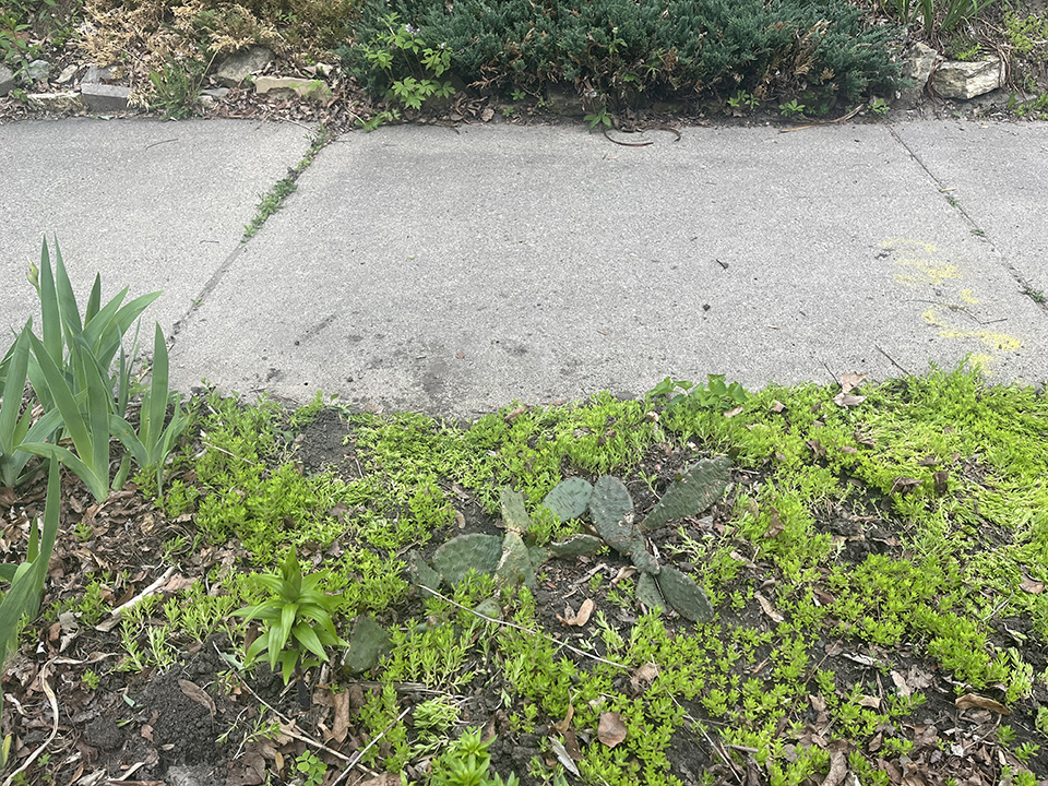 Pricky Pear in Minneapolis It is in the sidewalk flower patch in front of my house |