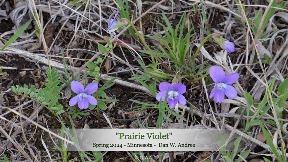 Prairie Violets... I came across these while out on a prairie in Norman County, Mn. on 5-14-24. First time I had ever seen one other than in photos or some online videos. Not easy to find they are so small and low to the ground other vegetation can conceal them. I found them to be an interesting and a beautiful little plant. I plan on checking again to see if more become visible since some seemed to almost just be sprouting or starting out. I really appreciate the little violets. |