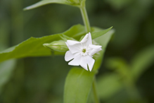 Balkan catchfly (Silene csereii) stems and leaves are hairless and glaucous. The stems do not have glandular hairs. The inflorescence has long, raceme-like primary branches. The calyx is smaller, only slightly inflated, and not ridged. It has 10 long and 10 short veins. In male flowers, the stalks of the stamens that support the anthers are purple. Female flowers have 3 styles which are 2 times longer than the calyx. The flowers open during daytime. The fruit has 6 teeth at the top. Bladder campion (Silene vulgaris) stems and leaves are hairless. The stems do not have glandular hairs. Plants either have both male and female flowers or they have female flowers only. The calyx is not ridged. It has 20 obscure, equal veins with a network of veins between them. The calyx the veins are green at first, then become pinkish. Female flowers have 3 styles which are 2 times longer than the calyx. The flowers open during daytime. The fruit has 6 teeth at the top. Drummond’s campion (Silene drummondii var. drummondii) has narrow, ⅜″ wide stem leaves. Night-flowering catchfly (Silene noctiflora) has perfect flowers with both male and female reproductive organs. The calyx is narrow at the mouth and constricted around the base. The flowers have just 3 styles. The fruit has 6 teeth at the top that are bent backwards. Starry campion (Silene stellata) stems are unbranched. The leaves are in whorls of 4. The female flower has just 3 styles. The petals have 4 to 12 frilly lobes. |