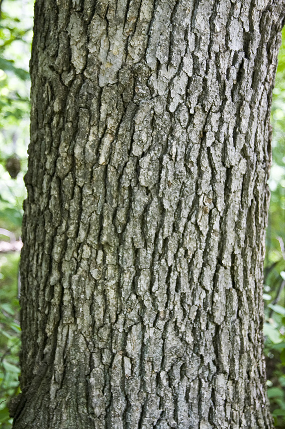 White oak is a slow growing, deciduous tree rising on a single trunk from a deep, fibrous root system with well-developed, tapered laterals. It is very long lived, often surviving 500 to 600 years. In Minnesota mature trees are usually 50′ to 70′ tall and up to 40″ in diameter, though individuals can reach 100′ in height. In open areas the crown is irregular and widespread with many gnarled and twisted, widely spreading branches. The trunk is stocky and is distinct well into the crown. In forests the crown is upright and oval. The bark on mature trees is relatively thin and ashy gray, with irregular, scaly blocks on smaller stems or narrow flat-topped ridges and shallow furrows on larger stems. The twigs are moderately stout. They are green to reddish-green and hairy when young, becoming gray and hairless as they age. Terminal buds are dark reddish-brown, hairless, egg-shaped, and ⅛″ to 3 ⁄16″ long. They are round, not angled, in cross section. They appear in a cluster at the end of the twig. Lateral buds diverge from the twig. The leaves are alternate, oblong to egg-shaped in outline, 4″ to 6¾″ long, and 2⅜″ to 4¾″ wide. They are on hairless or almost hairless, ⅜″ to 1″ long leaf stalks. The leaf blade is narrowly wedge-shaped or angled at the base and rounded at the tip. There are 2 or 3 often narrow primary lobes separated by narrow, shallow or deep sinuses and 0 to 5 smaller, secondary lobes per side. The deepest sinuses extend 50% to 95% of the way to the midrib. The upper surface is green, dull or shiny, and hairless. The lower surface is light green, hairless or with a few reddish, appressed hairs along the main veins. In autumn the leaves turn yellow, red, or purplish-brown. Male and female flowers are borne on the same branch. Male flowers are in slender, greenish, 1¼″ to 3″ long catkins that hang downward from buds on branchlets of the previous year. Female flowers are bright green and appear singly or in clusters of 2 or 3 on a short stalk rising from leaf axils on branchlets of the current year. The flowers appear after the leaves in early to late May. The fruit is an ellipsoidal or egg-shaped, ⅝″ to 1″ long, 7 ⁄16″ to ⅝″ wide acorn. It occurs singly or in clusters of 2 or 3 on a short, stout stalk. A scaly, broadly bowl-shaped cup encloses ¼ to⅓ of the lower part of the nut. The scales on the cup have a prominent, warty bump and the tips of the scales are free. The kernel is light brown. It ripens in mid-August to late September of the first year. |