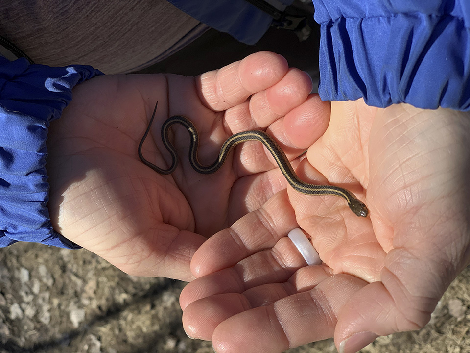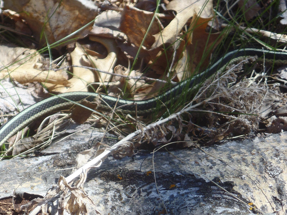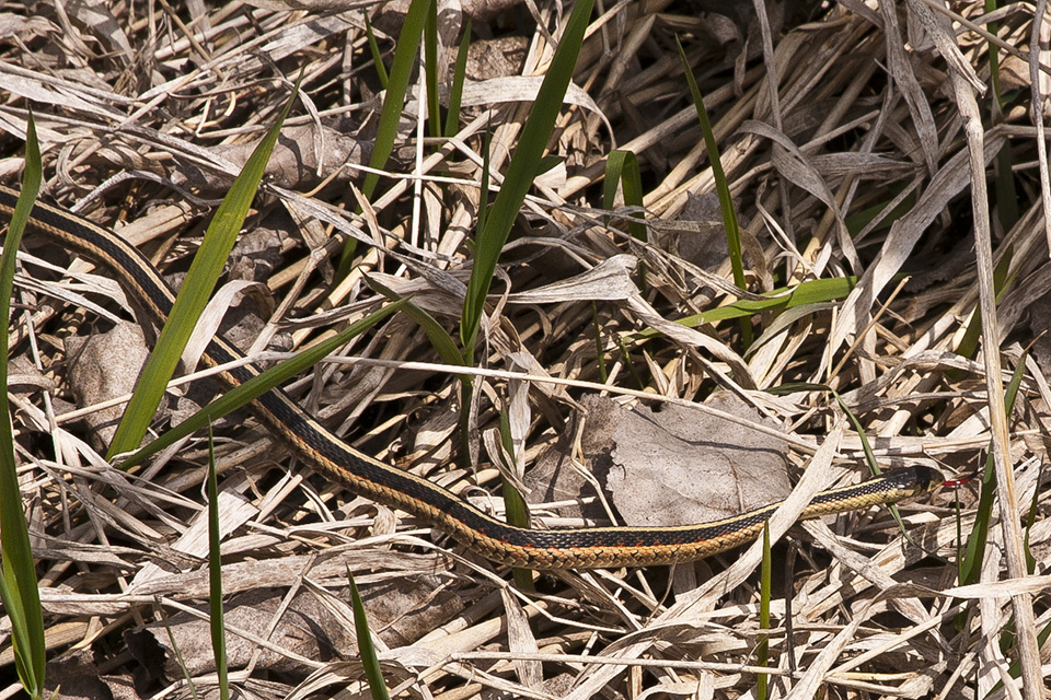 After a record cold week, the sunshine finally warmed things up enough for some springtime sightings like pasque flowers and this little garter. |