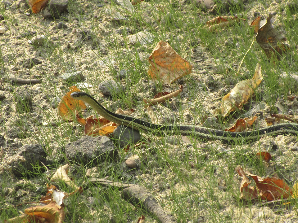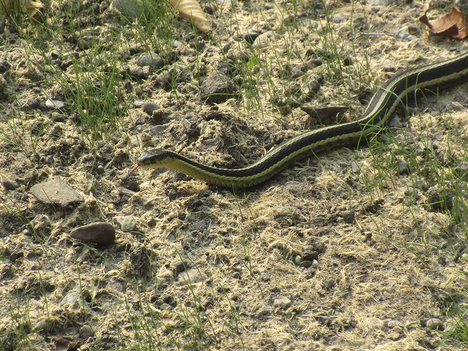 This garter sat very still so "I couldn't see it". Actually saw it very well and was able to take several photos. About 2 ft. long. |
