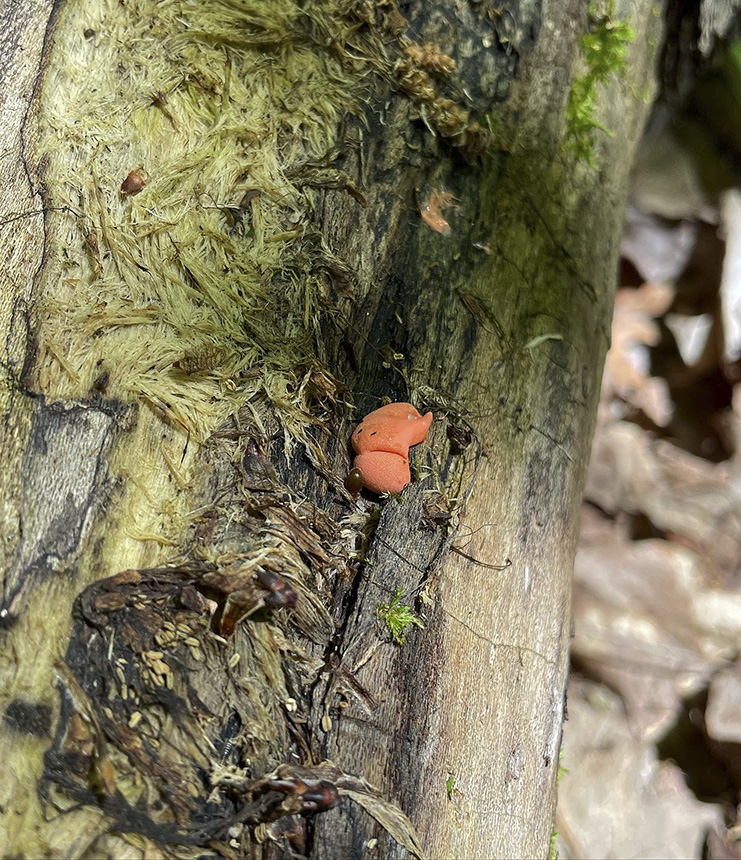 on a downed log in a wetlands area |