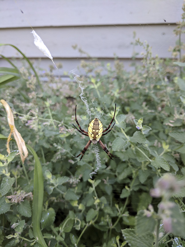 Yellow garden spider, also called black and yellow argiope, may be the largest web-building spider in the northern United States.