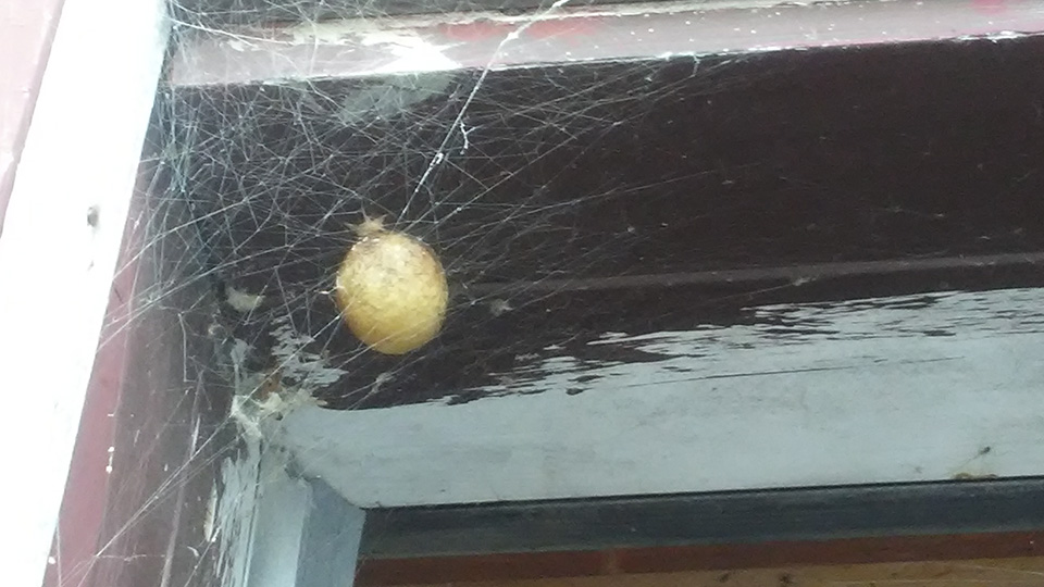 After mating, the female produces usually 1 to 3, rarely 4, egg sacs and attaches them to her web. Each egg sac is round, papery, up to 1″ in diameter, and contains 300 to 1,400 eggs. The eggs hatch in late summer or fall. The hatchlings overwinter in the egg sac, not leaving it until the spring of the following year.