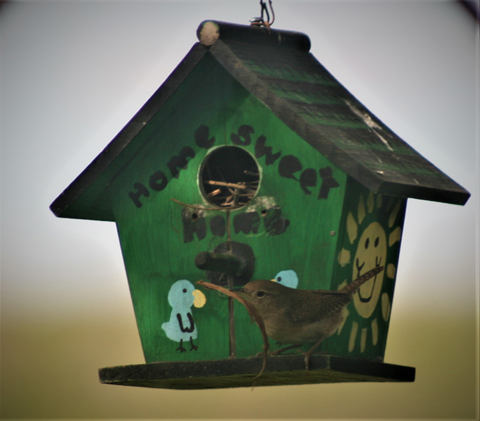 This little wren had a little bump with the window. Gave it a resting area and was soon ready to fly away. |